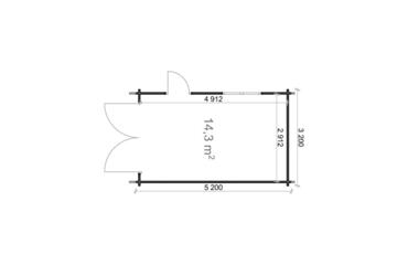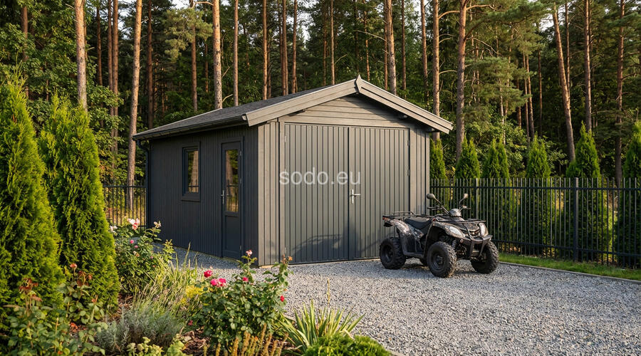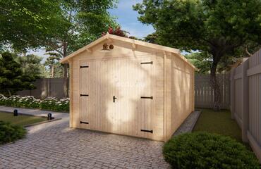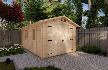 A compact garage with a gable roof, 28 mm walls, and 19 mm floor boards. It includes 1 room and offers 19.9 m² of roof coverage—perfect for single-vehicle shelter. Full truck - 20 pcs. Pack size - (500x5400x1200)